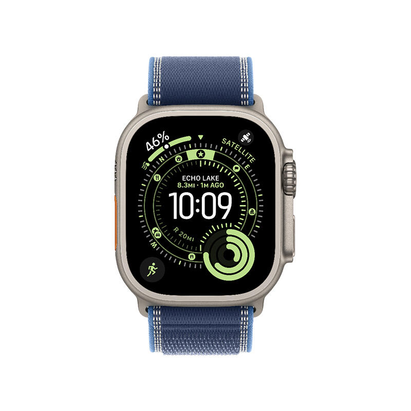 Apple Watch Ultra 3 49mm Titanium Case With Blue/Bright Blue Trail Loop MEWR4 S/M - ფლაგმანური სმარტ საათი, შექმნილი მათთვის, ვინც აქტიურ დღის რეჟიმს აერთიანებს ტექნოლოგიურ სიზუსტესთან.