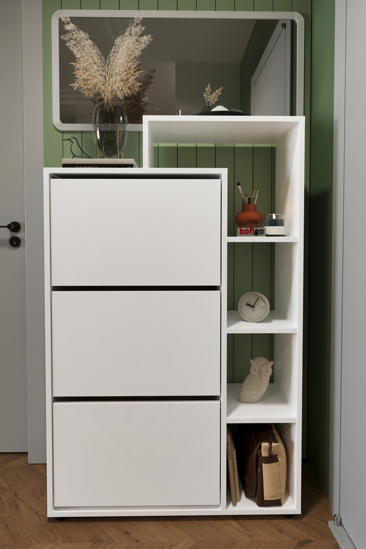 ფეხსაცმლის თეთრი კარადა თაროებით (BF993)
