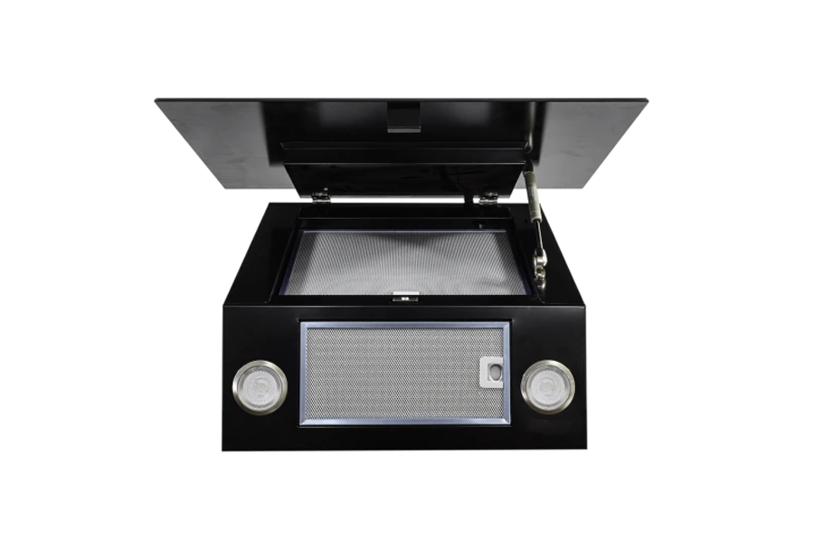 გამწოვის დახრილი , შავი ნაწრთობი მინის მოდელი იდეალურ იერსახეს შესძენს თქვენს სამზარეულოს