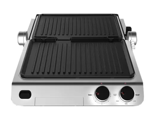 დახვეწილი დიზაინის გრილი-ტოსტერი, ალუმინის წინა პანელი და შუშის თავსახურის საფარი. გააჩნია სიმაღლის რეგულირების 5 დონე. ეხსნება ორივე შესაწვავი ზედაპირი, რათა უფრო მარტივად გარეცხოთ, ქვედა ნაწილში განთავსებულია ცხიმის ლანგარი, შეწვის დროს ცხიმი მიემართება ლანგარში. შესაძლებელია თავსახურის გადახსნა 180°-ით და გამოიყენოთ როგორც ორი გრილი.