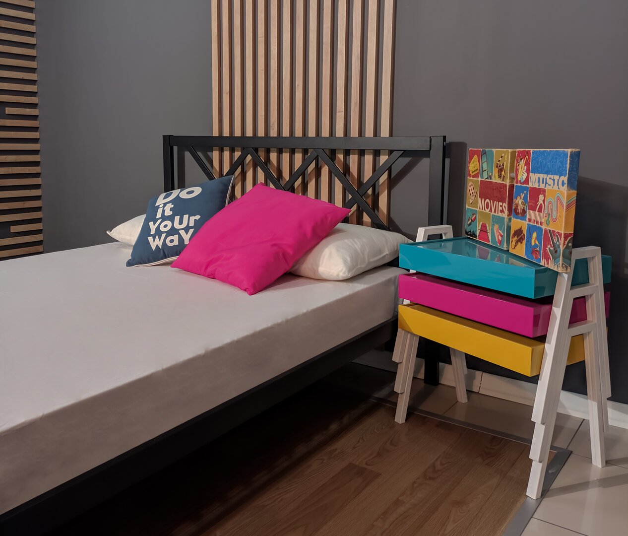 ორადგილიანი მეტალის საწოლი შავი 140*200 (MM1056)