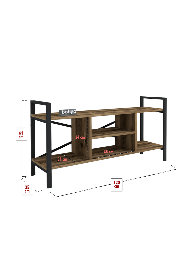 ტელევიზორის მაგიდა მეტალის კარკასით და მუქი ხის ფაქტურით (17)
